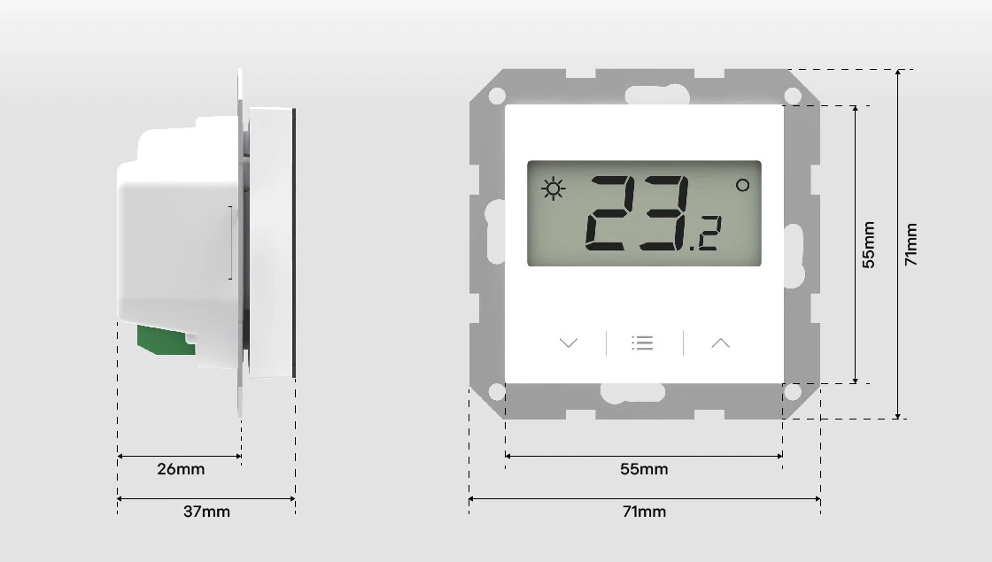 F-8z BIAŁY – Bezprzewodowy regulator pokojowy doramkowy (bez ramki szklanej)