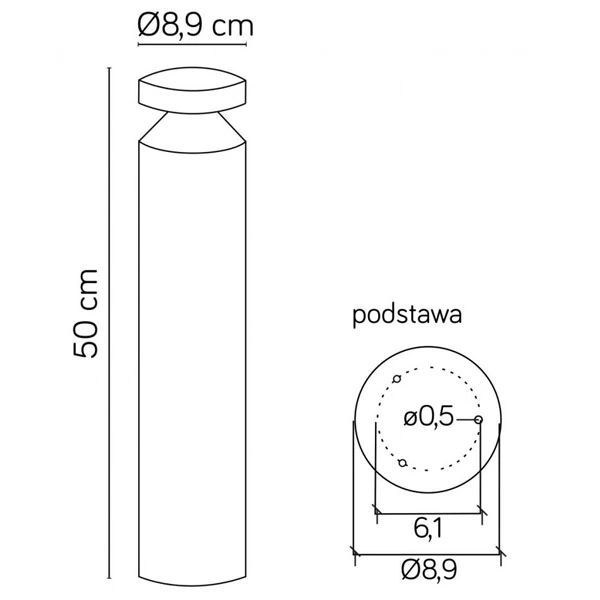 DL-500 to okrągły słupek ogrodowy o wysokości 50 cm, który znajdzie zastosowanie przy drodze dojazdowej lub ścieżkach prowadzonych do posesji.
